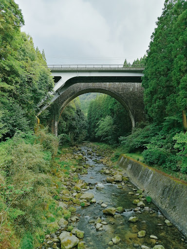 以下、歴史については、熊本県総合博物館ネットワーク・ポータルサイトより引用しています。 ーーーーーーーー 二俣橋とは、緑川の支流の釈迦院川(しゃかいんがわ)と津留川(つるがわ)の合流地点でそれぞれの川に架かっている二つの眼鏡橋のことです。 江戸時代には、旧砥用町方面からの道路はこの合流地点で二つに分かれていました。甲佐、熊本へつながる道は津留川に架かった橋を渡り、堅志田、松橋方面へつながる道は釈迦院川に架かった橋を渡ります。 これら二つの橋はそれぞれ独立した橋ですが、釈迦院川に架かった右岸側と津留川に架かった左岸側が接近しているため、直角に折れ曲がった一つの橋のように見えます。また、二つの橋がそのサイズや石組みなどでほぼ同じように造られていることも一つの橋に見える原因かもしれません。 この二つの橋をまとめて「二俣橋」といっていますが、江戸時代には、釈迦院川に架かる「二俣渡」、津留川に架かる「二俣福良渡」(ふたまたふくらわたし)、とそれぞれ名前があり、大きさがほぼ同じで、まさ...
