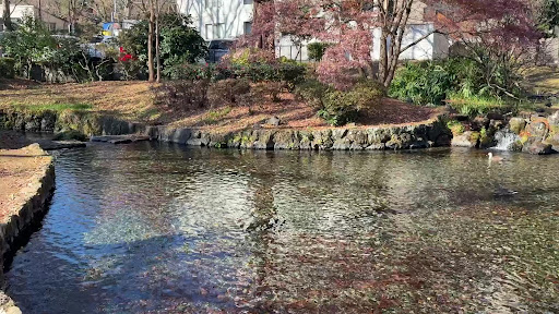 公園内には、子どもたちに人気のゾウの形をした滑り台や、水遊びができる浅い池があります。夏季には多くの家族連れが訪れ、子どもたちが冷たい湧水で遊ぶ姿が見られます。また、園内にはトイレやベンチも設置されており、休憩や読書を楽しむことも可能です。さらに、公園の入口付近には「めぐみの子」と呼ばれるからくり人形が設置されており、訪れる人々を楽しませています。なお、公園内には売店や飲食施設はありませんが、周辺にはカフェやレストランが多数あります。特に、公園近くの「茶房 欅」は、和の趣を感じられる甘味処としておすすめです。