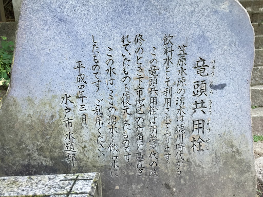実はココは、水戸黄門こと光圀公が城下の水不足を解決する為に作った江戸時代の水道(『笠原水道』)の"水源"だそうで。光圀が藩主の座を継いでからまず手がけた大事業だったそうです。