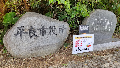 まず駐車場の入り口にある「平良市役所」という石碑が目に止まりました。隣に説明書きがあり、宮古島市は平良市ほかいくつかの市町村が合併して出来たと知りました。なるほど車で走っていると所々に合併前の名残がある道路標識を見かけましたね。そういうことだったのね~。