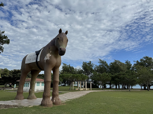Read more2025年1月29日 穴場スポットで絶滅危惧種:宮古馬の大きなモニュメントがある公園です。観光客は私たちだけでした。干潮で砂漣(されん)の凹凸がどこまでも続き素敵でした♪ 好みによりますが、行くなら干潮時がおすすめです。余った時間をまったり歩いて過ごしました。 駐車場/舗装:大変広く5...