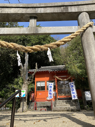 こぢんまりした無人の神社です。 境内には超巨大なアコウの木が複数あり、その姿は圧巻。国の天然記念物に指定されているそうです。 アコウ独特の、枝から地面に垂れ下がるたくさんの根っこや、めおとアコウの絡まり合う様は生命力のかたまりでした。一見の価値ありです。