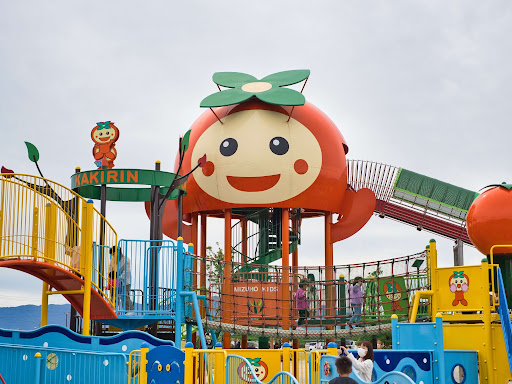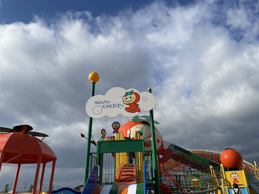 すごく大きな遊具があります。 駐車場からも目にすることができる、とても大きな遊具♪ 子供も大人も見た瞬間からわくわくして、走り出しそうになります。 瑞穂市の公式キャラクターである「かきりん」が付いた、複合遊具。 大きなかきりんの顔がついた遊具です。かきりんの顔の部分にも入ることができます。