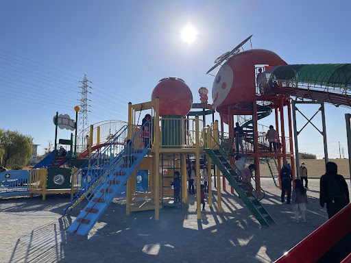 訪れた日は、土曜日ということもあり、公園全体がすごくにぎわっていました。 どの遊具もたくさんの子供たちが遊んでおり、賑わっていました。対象年齢は書いてありますが、お子様の近くでどの親さんも見ており、しっかりと見届けてみえました。走り回って事故にならないように、お互いに注意が必要ですね。