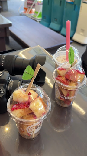 大駐車場、大鳥居の隣にある小國ことまち横丁では、はちみつりんご飴やわらび餅、煎餅や深蒸し茶の詰め放題などを取り扱っている。カフェなどもあるので、詳しく知りたい方は「小國ことまち横丁」で検索してホームページを参照。