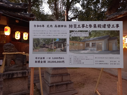 Takase Shrine is a Shinto shrine located in the Takase neighborhood of the city of Nanto, Toyama Prefecture, Japan. It one of four shrines claiming the title of ichinomiya of former Etchū Province. The shrine's main festival is held annually on September 13.