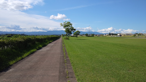 野洲市側にある河川敷公園。 野球、サッカー、陸上、テニス、グランドゴルフが出来、大きな芝生広場に公園遊具もあります。 トイレもありますが簡易トイレで汚れている事が多く、女性や男性も大はちょっと使いづらいと思います。 公園の一部がバイパス道路になるた...
