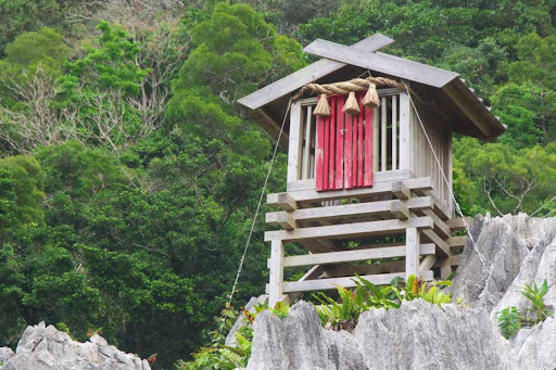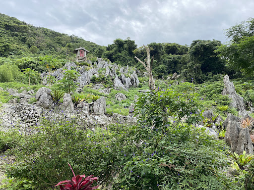 This is an unusual attraction called a Power Spot, as some believers consider it a place to hang up a plaque (for a small fee) and gain good fortune. The karst rocks can be sharp and dangerous to walk on but, if you're cautious, navigating the terrain, some decent photography can take place here. No charge to just visit and view this site it can be stroller and wheelchair friendly, only at the lower elevations. There is a small outbuilding with Men and Women's rooms and running water however, the Women's toilet was locked and it seemed, there wasn't anyone inside,...