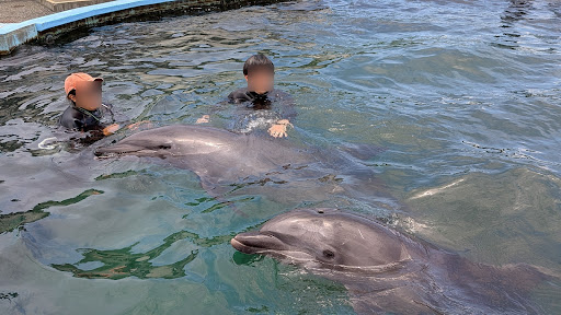 Read more4/3日 13:20からのドルフィンスイムに16歳と 10歳 46歳 の 女3人で 参加してきました。 龍馬空港に11:00着いて rent-a-carを借りて、11:30から 出発して 前日の計算だと 13:20からに 間に合う予定でいたのですが😂 レンタカーのナビの 到着予想が 14:00 全然間に合わないと 焦って ドルフィンセンターに連絡してしまいました😭 車を🚗 飛ばし気味で 走ること、途中で 到着予想の時刻が 1時間縮まり 13:00に到着する事が 出来て間に合いました。センターの方は皆んな優しくて ありがたかったです。 メインの ドルフィンスイムは このお値段で 3人貸切状態で 海に入ると早々 イルカ🐬さんが 足元に 来てくれました🤣感激!二頭のイルカと写真撮ったり 手を繋いで記念撮影したり 、お歌歌ってくれたり、他にも盛りだくさんでした。 メインの 背びれに捕まって 泳ぐのも、途中で 落ちた娘は イルカ🐬さんが 落ちた所までちゃんと迎えに行ってくれて 大満足の経験でした。