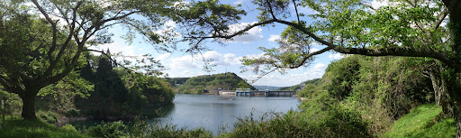 名張市R166線夏見の信号真っ直ぐ進み曽爾方面の15分~20分車で走ると木津川の少々道幅狭い赤い橋を渡ると青蓮寺湖ダムが有ります❗一般の一級河川は、直列に山の上から下流に流れますからダムの水は少ないが個々は、年間通してかなり水量は多く回りは、橋が青とか赤が目立ちますし、水は、緑色していました!木々は多く湖面は静かでした❗個々は、少し行つた上流の水深5メ-タ-の深い所に数匹の体長2~30センチの多きな鯉が泳いで、いました!休憩するに...