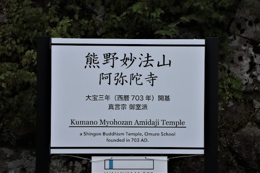Read more賑わってる那智の滝、那智大社の参道前の道をずっと上に登って行くとかなりのクネクネ山道〜 細い山道なので対向車に気をつけながら登りますが、車がすれ違うこともなく山頂まで辿り着くと 阿弥陀寺が出てきます。とても静かでひっそりしすぎで不思議な空間です。 緑の苔だらけで両側は高い杉の木で囲まれた階段を上がって行くと、朱色の門のお寺が! 中に入ると、とても美しい庭で季節の花が綺麗に手入れされてます。入口にひとつ鐘があり、打たせて頂きましたが、静かな山頂に響き渡ります。 本堂の中に入れるようだったのでお邪魔すると、金色の綺麗な阿弥陀像が〜色々な黄金の装飾があり美しいです。 本堂横の道を行くと、子安地蔵堂、奥の院などありますが、一番印象的なのは火生三昧(かしょうざんまい)跡でした。説明を読むとビックリ! 複雑な気持ちになりました。