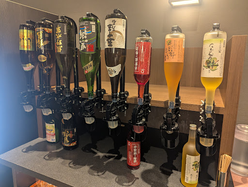 潮騒の湯入り口の手前、フリードリンクコーナーには今まで通りのソフトドリンクに加えてビール、チューハイ、ハイボール日本酒、柚子酒、ワイン等が飲み放題となりました。新たにフロント付近にも同じ様式が新設されています。