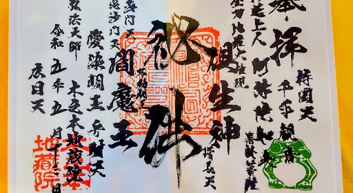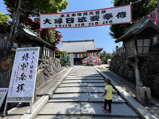 こちらは聞きなれない時宗(じしゅう)という宗派、鎌倉仏教の時代に始まり、「南無阿弥陀仏を唱えれば、信仰の有無に関係なく、極楽浄土に行ける」という教え、無宗派の私には有難い教えです。一遍上人を宗祖に広まり、浄土宗(開祖法然上人・本山は京都の知恩院)から派生した宗派、時宗の本山は神奈川県藤沢市の清浄光寺です。ここは木之本地蔵院と呼ばれていますが、公式の寺号は浄信寺(じょうしんじ)といい、御本尊は秘仏地蔵菩薩(基本非公開・直近は2019年33年振りの開帳)、子供の守り神・道祖神・延命の仏様、眼の病気に御利益があり、片目をつむる願掛けされた身代わりのカエルが境内の至る所に姿を見せカワイイです。地蔵菩薩を安置する本堂を五色幕が周囲を囲み、その幕は、お釈迦様の教えや身体を表し、陰陽五行や五行思想が五色で表現され、境内に入る前から五色幕を見えるだけで、お寺に来ました感が漂います。2006年には、御本尊の納められている厨子の下を巡る、御戒壇巡り(ごかいだんめぐり)が始まり、57m余りと続く漆黒の中を、御本尊の手と五色の紐で結ばれた錠前に触れる事が出来ます、お布施300円が必要ですが、漆黒の暗闇の中を一心に手探りで歩く事2・3分の修行かとの思いですが、ビビりの私は、漆黒の中突然、生まれるも死ぬも一人だとの思いが、不意に湧き出たところで、御本尊に繋がる錠前に触れる事が出来、一人でウルウルです。続いて本堂右後方には阿弥陀様をお祀りする阿弥陀堂へお参り、最後本堂に戻り御朱印をお願いします。本堂は1583年(信長の死後翌年)に秀吉と柴田勝家の戦で、秀吉が当寺に本陣を置き戦火で焼失、1601年に息子秀頼の命で家臣の片桐且元が再建するも、再び江戸時代に焼失、その後再建された建屋と歴史は古く、本堂の煤けた梁にも歴史ありと思い馳せ、最後に夫の眼病治癒を願掛けする事ができ、御縁を結びました。お参り後は参道に伸びる木之本の宿場町をそぞろ歩き、酒屋の杉玉を下から覗いたり、地元人気パン屋で買物、薬種問屋の独特な建屋と記念撮影、増しまし...
