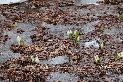 Read more奥裾花自然園(2022.5.3、1,260m付近) 裾花川の源流にあります。一帯は「水源の森百選」に選ばれるほどの清流があり、ブナやトチの原生林に囲まれた湿原には本州随一といわれる水芭蕉の大群落があります。時期的に、少し早すぎた感はありましたが、湿原の雪溶け部分から水芭蕉の可憐な白い姿を見ることが出来ました。 遊歩道が整備されていますが、かなりぬかるんでいる場所もあり、登山靴か防水シューズ必携です。2時間程のトレッキングになりました。 車は、奥裾花自然園の駐車場に置きました。白馬村から、約1時間で到着します。路肩に若干の雪は有りますが、道路には全くありませんでした。 そこから自然園までは、マイカー禁止になりますので、徒歩かシャトルバス(期間確認要す)になりますが、歩いても20分〜30分程度です。駐車場や園にト...