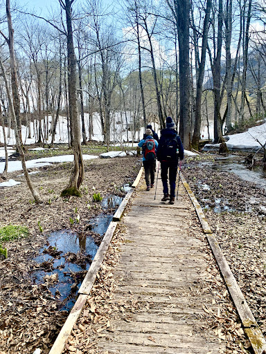 Read more初めて水芭蕉の季節に行くことができました。今年は雪が多かったので長靴で正解!静かにきれいに水芭蕉は咲いてました。ブナ林も素晴らしいので新緑を堪能したいところですが、道路が再開する紅葉シーズンに再訪します。道路、駐車場は平和で、途中の地形は迫力すごいです。シャトルバスは13:30で終了でした。行きは利用した方が良いと思います。鬼無里の観光Webサイトに見頃などタイムリーかつ詳しく掲載されてます。そして観光センター🎵山菜天麩羅蕎麦ほっとする旨さです。日本一のきび団子も最高❗何よりお店の方々がとても優しくて感じが良くて、素晴らしいところです❤️ 駐車場と湿原...