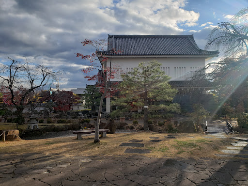 Read more本丸跡 Main Bailey [所在地]長岡京市勝竜寺 本丸迹 [改修]室町時代・元電2年(1571) 改修 光2年(1571)、織田信長の命を受けた細加藤学は、それまであった勝龍寺城を、京都防衛の軍事拠点として、大規模に改修しました。 昭和63年(1988)の発掘調査で「瓦・廃若建物(殿主)・石垣」という当時の最新技術を取り入れた城であったことが判明しました。 本丸は東西約120m・南北約80mの長方形で、周囲は高さ4~5m の主堂で囲まれ、外側には堀を巡らせています。堀は幅10~15m: 深さ約3mで、本丸側の堀裾には石垣を築いていました。石垣の下には、沈み込みを防ぐ木の土台が据えられていました。石垣の築造には自然石のほか石仏や五婚なども使われていました。 瓦も大量に出士し、 新究賞:...