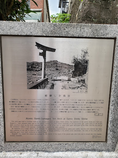 Read moreSanno Shrine's one-legged Torii Gate is a deeply moving and historical site that left a strong impression on me. This torii, partially destroyed by the atomic bomb in 1945, stands resiliently on one leg, symbolizing both destruction and survival. It serves as a powerful reminder of history and the resilience of Nagasaki. The surrounding area is peaceful, and it’s humbling to stand near this enduring structure. If you’re visiting Nagasaki, this site offers a profound and unique experience that honors both the past and the strength of the...