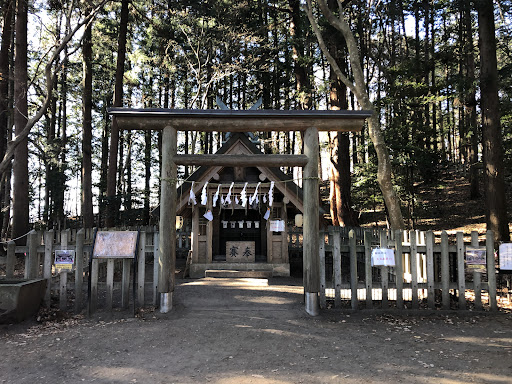 日本武尊ゆかりの宝登山神社の奥宮。 この神社の狛犬は巨犬・・・・大神オオカミ。 神話時代の日本武尊による東征の際、この山を拝しようと山頂に向かうと巨犬が現れ道案内をす。途中「火」により行く手を阻まれるが「巨犬」により「火」は鎮められ日本武尊は無事、山頂へたどり着くき。日本武尊は「巨犬」に感謝したら、突然姿を消した。という逸話。 これより、この山を「火止(ほぼ)山」、後に「宝登山」と転じた。 ここに、神日本磐余彦尊(かんやまといわれひこのみこと・初代天皇神武天皇)、巨犬の出仕から大山祇神(おおやまずみのかみ)、火産霊神(ほむすびのかみ)の三神を祭り社を建てる。 後に山麓に宝登山に社殿を建立し三神を鎮座したのが起原。