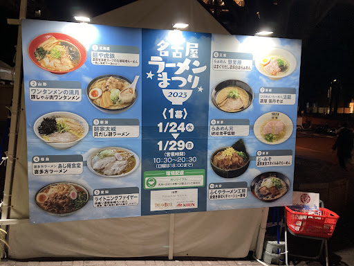 Read more3年ぶりにエディオン久屋広場で開催のラーメンまつりやってました♪ 1/24~第一弾、1/31~第二弾、2/7~2/12第三弾と実施しているイベントです。 時間:10時半から20時半(日曜日は~18時まで) 場所:久屋大通のエディオン久屋広場 最寄り駅:地下鉄名城線矢場町です。