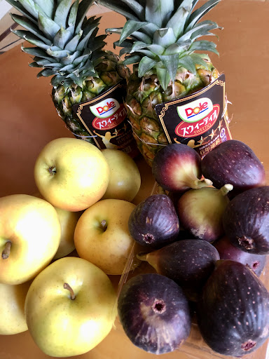 Read more笠地蔵ならぬ笠観音を祀る寺、通称 笠寺観音こと笠覆寺(りゅうふくじ)の毎月「6」のつく祈願日の青空市『六の市』(雨天中止)に出向いてみました。 車での訪問なので近隣のパーキングに停めて、目的地は同じであろう地元のお婆さま等に混じりながら歩くと西門に到着。 ※写真映えなら南側にある緩やかな石橋と放生池が有る「仁王門」がオススメ。 21年10月の時点ではまだ改装中の本堂の周りには出店が数店。出店の数が少ないなと思いながら奥に向かうと坂を登る道中から青果や鮮魚の出店が並び始める。(主に青果) 訪問はすでに昼過ぎの為、来客もまばらで品数も少なめだけれども食べ頃の青果が並んでおり、秋採れの野菜にも目を惹かれますが今日の目的は果物なので数店を見て周ります。 大ぶりのシャインマスカットが1000円で有ったり、もう収穫も終わりそうな大ぶりの梨にも悩みましたが、売り子のお姉さんに勧められて、既に熟れ熟れの「いちじく」と小ぶりながら香りの良い「ときりんご」を購入。あと別店にてパイナップル(コレはDOLEで地域感は無し...