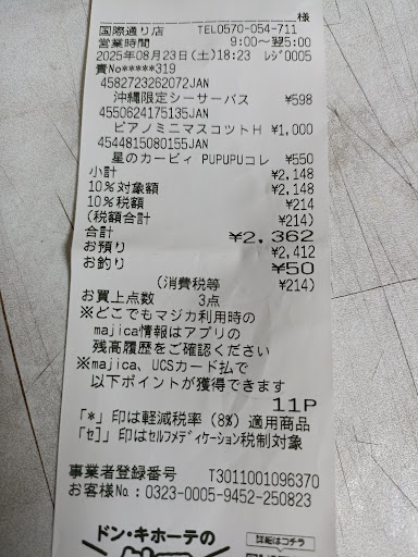 Lần đầu tiên đặt chân đến Don Quijote Kokusai-dori, một trong những chi nhánh của chuỗi siêu thị nổi tiếng Don Quijote tại khu phố mua sắm Kokusai-dori ở Naha, Okinawa, tôi đã thực sự bị cuốn hút bởi không gian sôi động và đa dạng của nơi này. Được mệnh danh là "thiên đường mua sắm" dành cho cả người dân địa phương lẫn du khách quốc tế, Don Quijote không chỉ là một cửa hàng mà còn là điểm dừng chân lý tưởng để thỏa mãn mọi nhu cầu mua sắm với mức giá hợp lý và nhiều ưu đãi miễn thuế.
