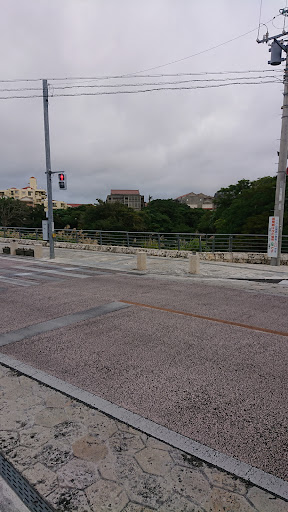 首里城内の水源から円鑑池に注がれた水は溢れて隣の池へこの橋の下を通って龍潭に流れ込む仕組みになっています。 かつては首里城から浦添などの中北部に至る重要な街道(西街道)は中城御殿(尚侯爵家本邸)の側に結んだ道で、進んだ先は石畳坂道で、西街道の一部でありました。本来は師範学校の敷地に元々あった街道は龍潭池の近くに沿って有りましたが、沖縄戦で龍淵橋と繫がる街道は破壊されていて。現在その場所は、地表は盛り上げられて校舎が立ち、街道跡は石垣で閉ざされて、今では右へ「弁財天堂池」の側に沿う遊歩道になっています。
