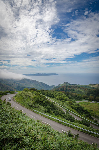 The Tatsutomari (West) climb is the most northern key climb of Honshuu (main island) in Japan that is located on the Tsurugaru Peninsula by Cape Tappi. The area can be very windy (hence the windfarm on the eastern side of the climb). Although there are restrooms at the summit, there are no locations to buy water on the climb. The last location to buy drinks before the west climb is the Roadside Station Kodomari about 6km south of the climb. After the roadside station, the scenery and landscape in the area is rugged/stunning and there are no buildings/dwellings until you reach the summit. The climb itself has great road surfaces, unbelievable views and challenging gradients and is highly recommended. The summit can be seen from about 2.5km into the climb.The east climb is also a nice climb (10.6km/4.2%) with steep gradients at the start of the climb while it passes a wind farm.