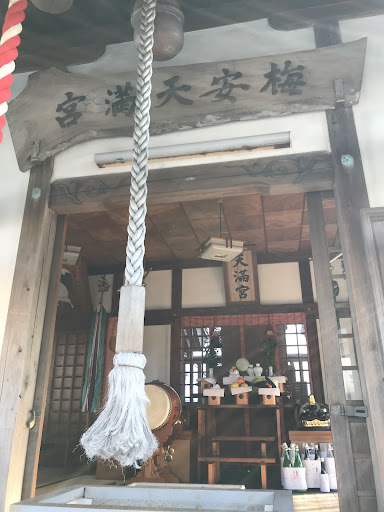 ここ徳若の天満宮は丈永年間(四五〇年 前) 太宰府の菅公(菅原道真公)を勧請して祭られたもので延享年間(二三〇年前)惣社山よりここに移されています。 この地はもと梅安といわれていたことから、梅安天満宮と称され 祭礼日 の御神幸は遠賀川の渡場までおくだりになり御神輿の前後には神官が騎馬で伺候し、舎人(トネリ)が音楽を奏して奉従し近村からの参詣者も多く盛大であったといわれています。 また、一説には安産の神として崇敬され 産安天満宮とも呼ばれていました。 この神社は公民館の集会に利用されていましたが、昭和五八年三月氏子の総意に基き浄財を集めて拝殿が新築され見事に完成し、公民館は移転し、伝統のうそ替神事が継承されています。