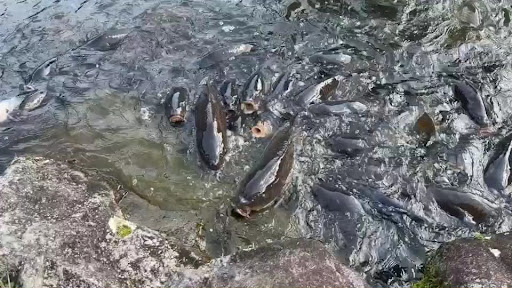 池には鯉が泳いでて良い雰囲気ですね〜。東屋に有るガチャガチャで餌が購入できますよ。一度購入して鯉と戯れて居たのですが、初めは数匹だった鯉がいつの間にか数十匹の群れになっておりこれでは餌が全然足りないなと、慌ててもう一度購入しました。食欲は旺盛でしたね。
