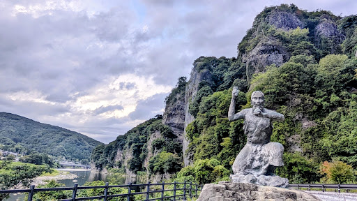 Zenkai who stopped at Yabakei on his pilgrimage to various countries was heartbroken to see people and horses lose their lives on this dangerous road and began digging a rock wall on his own in the 20th year 1735.