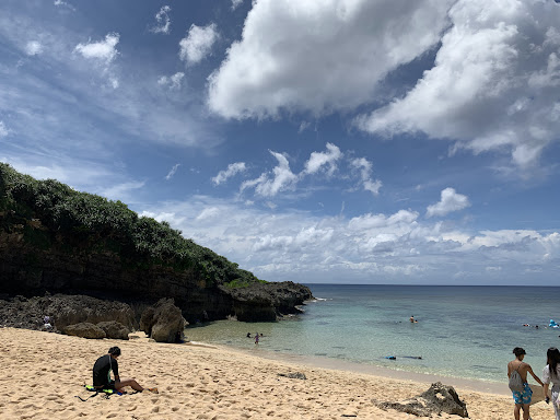 Now for the beach itself.. simply breathtaking. Sunset or Zampa don’t even compare. The dangerous path truly leads to something worth it because while it’s a small beach, the right half is littered with those taking photos of heart rock while the left has an amazing area to swim and have fun. Crystal clear water- warm water at that, both shallow and deep enough for all ages, and has an amazing scenic value. The beach itself is dirty from tourists and whatnot but what can you expect? There’s a small cove that we all set up base at which had a natural cover for shade and away from the boards of people. It was relaxing.
