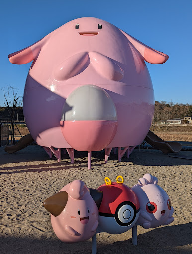 This is a park with Pokémon shaped playground equipment located in the grounds of "Roadside Station Namie". As the name "Lucky Park" implies, the park is marked by a large Chansey ("Lucky" in Japanese) playground complex, and there are other playgrounds dotted with equipment featuring Pokémon, mostly with pink bodies. The park attracts not only children from nearby houses but also families from all over the country. On the other hand, the parks are not large enough for children to play around in, as they are about the size of parks scattered around residential areas. The playground equipment seems to be designed mainly for preschoolers to early elementary school students. There are no fences around the park, so it is best not to play with balls. If a ball falls into the river north of the park, it may not be recovered. I saw many parents taking pictures of their children playing, as each piece of playground equipment is very photogenic. This is a great way to remember your trip to "Roadside...
