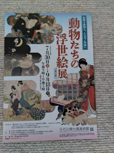 Read more石川県立の立派な美術館です!丘一つを体育館等の複合施設で構成して、環境の良い立地条件となっております。 通常は能登にゆかりある作品が展示されています。丁度、企画展として〈動物たちの浮世絵展〉が開催されていました! 夏休み中の企画展のようです。まるで漫画のように楽しかったです。浮世絵に動物たちも描かれています。絵師達は歌麿・広重・北斎・豊国など、錚々たる顔ぶれです👏思わず楽しい鑑賞となり、感謝です🙇 追伸「能登半島地震を御見舞申し上げます」 大変な災害で心を痛めております😖 報道では七尾美術館の事まで、まだ伝えられません!皆様・施設・作品等、大事ありませんでしょうか? 早い復興・復旧を心より願っております🙏微力ではありま...