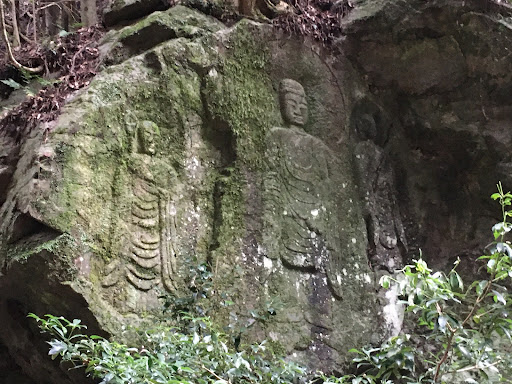 Read moreFrom the new guidebook "The Samurai Trail; Enjoji Temple to Mount Kasuga," "This fine piece of work is called the Sunrise Kannon, although the figures are not Kannon, the spirit of mercy. Instead, the central figure is Maitreya, the Buddha of the Future. He is flanked by two Jizos. The carving faces to the east to catch the rays of the rising sun."...