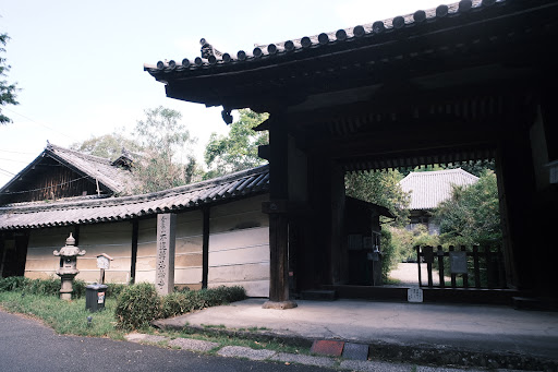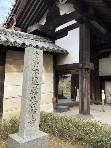 不退転法輪寺(ふたいてんほうりんじ)真言律宗、不退(ふたいじ)あるいは業平寺(なりひらでら)とも言われる。 第51代平城天皇が譲位後、住まわった地で、「萱の御所」とも言われた。皇子の阿保親王、その子で平城天皇の孫の、在原業平(ありわらのなりひら)もこの地に住み、業平が寺としたことから、業平寺とも言われる。 近代、しばらく無住であったが、明治に現在の住職の父か、祖父が入り、再興した。 寺の入り口の門は、南向きで、上方中央の蟇股(かえるまた)は、大きく、専門家が計測に訪れたこともある。鎌倉末期の建築で、昭和初期の修理の際に、一部板を入れ替えた部分もあるが、門に連なる土塀を含め、多くは鎌倉時代のもののままである。南門の正面には本堂、右手側には木々の間に多宝塔が見える。写真家の間では、他の有名な寺よりも人気のあるアングルである。 境内には、古墳時代の石棺がおかれている。近くから発掘された二基のうち、蓋のある一基は他所に移ったが、蓋のない一基が境内におかれている。 ご本尊は聖観音菩薩立像、平安初期の一木造り、顔がふっくらとしている、光背が蓮の花を開いたような柄で特徴的である、また、冠を結ぶリボンが付けられているのが珍しい、蓮台は開ききった蓮で過去、光背の蓮は今まさに開いている蓮で現在、左手の蓮は蕾で未来を表す。 本尊の周囲には、五大明王と地蔵菩薩が祀られている。五大明王のうち特に不動明王は、表情が柔らかく優しい。厳しい表情として作られるようになったのは、後年のことで、初期のものは、穏やかな表情である。藤原時代中期(平安時代中期)の作風である、玉眼は、後に入れられたものである。 地蔵菩薩像は、弘仁時代(平安時代初期)のもので、元は、多宝塔に安置された千体地蔵の...
