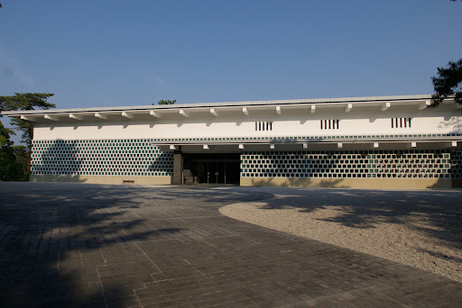 設計は吉田五十八。外観は海鼠壁が目立ち、わりと大きな建物かと思わせるのですが、そうでもないです。展示場と講堂、ミュージアムショップのシンプルな構成です。展示場には中庭があって、そこを中心にぐるっと回りながら、作品を拝見する感じ。
