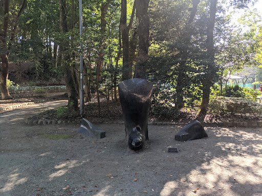 入口には謎のオブジェクトと看板があります。「森林公園」と記載はありますが、マップ上では藤崎森林公園となっています。