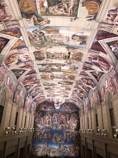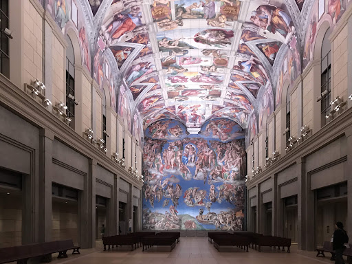 Read more大塚国際美術館B3F、展示室1番。この美術館で、一番の見どころが美術館の入口の正面にあるシスティーナ・ホールです。ヴァチカンにあるシスティーナ礼拝堂を忠実に再現した原寸大のホールです。ホール内にはベンチが並んでいるので、腰を掛け、正面のミケランジェロ作「最後の審判」をじっくりと眺めるのもよし、天井画を見上げるのもよし、聖書の場面が描かれた壁画を見るのもよいですね。思い思いの楽しみ方ができるホールです。