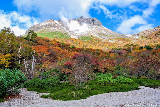 Read more牛首からの三斗小屋温泉へのルートの途中ポイントですが、下りきった広場になった場所から茶臼岳が姿良く見える展望場所として有名です。姥ヶ平は紅葉が格別に美しく、関東地方の山でも屈指の紅葉の名所です。標高はそれほど高くはないですがハイマツが生育しているため、真っ赤なナナカマドやカエデとオレンジ色や黄色のダケカンバ、そしてハイマツの緑という、高山・亜高山特有の「錦の紅葉」を登山初心者でも眺めることができます。 牛首からの往復の所要時間は標準で下り15分登り20分となっていますが、ザレ(小砂利で滑りやすい)ていたりガレ(岩がゴロゴロしている)ている箇所もあり、登山靴の方が良いでしょう。また紅葉最盛期は登山道がハイカーで渋滞することもあり、充分時間の余裕を持っ...