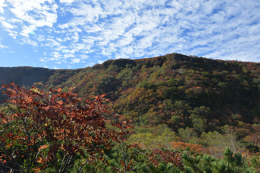 Read more那須岳の紅葉の名所といえばここ。 紅葉の見ごろの時に、沼ッ原駐車場から姥ヶ平を訪れた。 目の前に広がる紅葉とその背後に聳える茶臼岳は絶景である。 茶臼岳に上る途中から見下ろす姥ヶ平も錦糸の絨毯のようで美しい。 姥ヶ平の一角には奪衣婆の石像がある。奪衣婆は三途の川で亡者の衣服をはぎ取るという老婆の鬼。その奪衣婆がこの姥ヶ平の名の由来になっているともいわれる。 すぐ近くにはひょうたん池があり、池の水面に映る逆さ茶臼岳を見ることができる。 姥ヶ平から茶臼岳は午前中は逆光、午後は順光になる。 紅葉の時期は峠の茶屋やロープウエーの駐車場は速い時間から満車になり、大混雑するので、沼ッ原駐車場から姥ヶ平を経て茶臼岳に登るのもいい。 往復するとほぼ一日コースとなるが、その代わり午前中の姥ヶ平と...