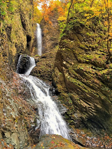 Ryuka Falls, located in the Shiobara Onsen area of Nasushiobara City, Tochigi Prefecture, is a three-tiered waterfall with a total drop of about 130 meters. Its name comes from its resemblance to a dragon ascending to the heavens. From the parking lot, a 20–30 minute walk along a well-maintained trail takes you past smaller waterfalls like Fuke Falls and Fukyo Falls, as well as beautiful ravine scenery, all accompanied by the sound of flowing water and the scent of the forest. From the viewing platform, you can see the dramatic combination of the first vertical drop, the second cascade, and the third slanted fall, while soaking in the refreshing negative ions. Each season offers a different charm—fresh green in spring, cool shade in summer, vibrant foliage in autumn, and a snowy landscape in winter. The autumn leaves, in particular, create a spectacular view of the entire gorge. Although the path is maintained, there are areas with falling rock warnings and slippery spots, so sturdy walking shoes are...