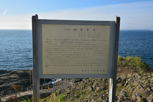 海岸にある角張った岩は、地中のマグマが冷えて固まった粗粒玄武岩。この周辺の粗粒玄武岩が生まれたのはおよそ6000万年前の白亜紀と言われ、熱いドロドロの溶岩が急激に冷やされた後、まだ溶けている内部に海水が浸入してさらに急冷され、このような車石をつくり出したのだそう。これほど大きな車石は世界でも珍しく、1939年には国の天然記念物にも指定されています。