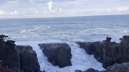 🏞️ Breathtaking Setting Perched right into a seaside cliff, the shrine overlooks the ocean through a naturally formed cave. Walking there feels like entering an enchanted world—waves crashing below, salty sea breeze in the air, and the view through the cave like a secret window to the sea.