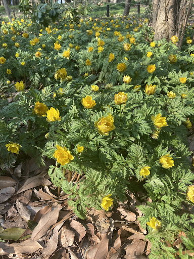 Visited Kencho no Mori (Forest at the Prefectural Office) and was greeted by a stunning display of Yukiwari-so (snowburst flowers) and Fukujuso (adonis flowers) in full bloom! 💐✨