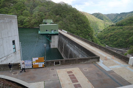 ダムの形式としては自身の重量で水圧を支える重力式コンクリートダムで、堤頂部は直線状で下にいくほど高くなる水圧に対応して、末広がりに厚みを増す典型的な形状です。 ほぼ並行して存在する近くの川治ダムとは導水管で繋がっており、水が足りない時は融通してもらい満水時はポンプで水を送って、下流への放水量を一定に保ち無駄な放水を防ぐ仕組みになっています。二つのダムが一つの大きなダムのような働きをする訳です。