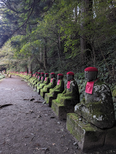 This along with Takino'o Shrine was my favorite spot in Nikko. It is magical. Stone sculptures of monks covered in moss, some destroyed some well-preserved, lining the forested volcanic canyon where the river flows being fed by waterfalls and other inlets pouring in making a constant crashing water effect. Was a popular spot in the 17th century among ascetic monks, and everywhere are traces of how they must have kept it up, gardens etc, including the reconstructed cliffside pavilion (last one swept away by flood, in 1901 I believe) where fire rituals were performed... A special...