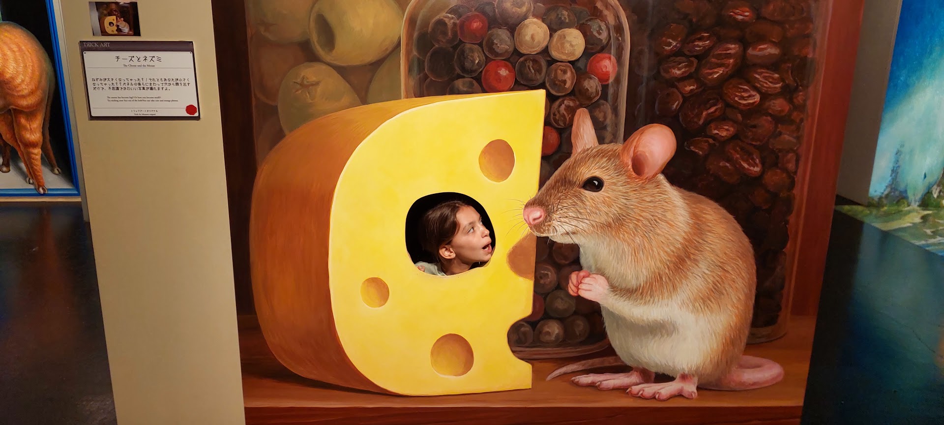 雨降りの栃木。待ち時間0分。入口ではまるでアトラクションに乗車するかのような案内があり、ワクワクでした。扉を開けると中には様々な絵画があります。美術館に来ました!という感じでそこも感動。最初は鳩ぽっぽの絵を見本に見方や撮影についての説明があります。その後は自由に。たぶん順路はあちこち自由です。反時計回りにスムーズに見学しました。1つ1つの絵には撮り方の説明が貼ってありますので、それを見ながら自分達のやり方でゆっくり撮影できました。錯覚を利用した部屋、飛び出す絵がいっぱいあるので、撮影する角度、場所、ポーズ等を変えると違う雰囲気の写真になり楽しみ方は無限です。トイレがあるのかと入ろうとしたらトリック!あれはビックリしました。大人も騙される。トリック迷路も中学生の息子は壁の扉に騙されて押し開けようとしてました(笑) 入れない、そのドアノブは、回らない。その扉も開かない。絵なのに騙されて、よくできてるなぁ、を何回連発したことか。 わざとなのかわからないですが、トリックの絵の裏側にも、staffONLYの文字がある扉が。トリックだったのかいまだにわからない。本物だとしても、開けた人いっぱいいるはず。最後の出口で油断した息子、最後まで騙されてて爆笑でした。行って見て下さい。騙されます。 まだ全部見れていないので、次は室外もゆっくり...