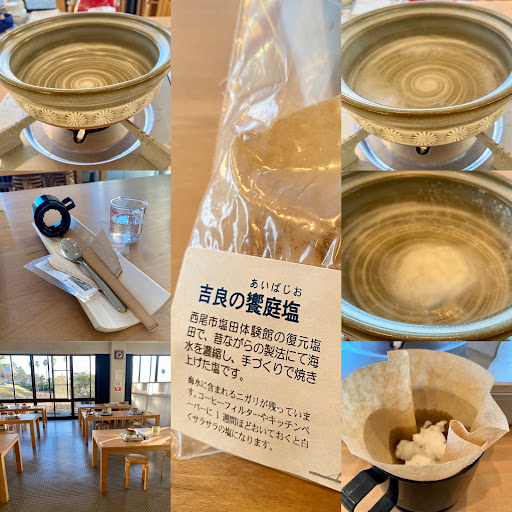 こちらで口コミを見て、塩づくり体験を楽しみに伺いました。 簡易式の塩焼き体験は、200円/人 10分程度とお手軽にできます。 スタッフの方の説明が とても丁寧で詳しく 楽しいです! そして、あっという間に理科の実験のような塩作りの時間も過ぎていきます。 完成した塩は、まだ完成させなければいけないので、うちでさらに1週間程度水分を抜くため、乾燥させなければならないそうです。
