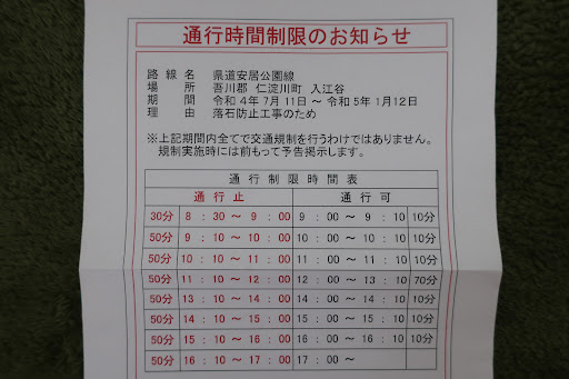 ๅฎๅฑ ๆธ่ฐทๆฐดๆถๆทตใใ่ปใงใใใซ5ๅ็จ้ฒใฟใพใใๆธ่ฐทๅธฐ่ทฏใๅ่ทฏใจใฎๅๅฒใ้ใใฆใใใฎๆฉๅทฆๅฒธใซๅ ฅๅฃใฎ็ๆฟใใใใพใใๅๅฒ็ฎๆใฎ้ช้ญใซใชใใชใใใใซๅฏใใฆๅใใใใพใใใใใใฏๆฉใๆธกใฃใฆ300๏ฝใปใฉ้ฒใใจ่่ฃ ่ทฏใ็ตใใใจใใใซๅบใ็ฉบๅฐใใใใพใใฎใง้ง่ปๅฏ่ฝใงใใ็ๆฟใใๅ ใฎ้ใฏไปฅๅใฏ้ๆญฉ้ใ ใฃใใฎใใชใจใใๅๆฎใฏใใใพใใใๅฎๅฑ ๆธ่ฐทใฎไปใฎๆปใฎใใใชๆดๅใใใ้ใงใฏใใใพใใใๅดฉ่ฝ็ฎๆใๅน ใฎ็ญใ็ฎๆใ่ธใฟ่ทกใฎ่ใ็ฎๆใชใฉใใใใๅฑฑๆญฉใใซใชใใฆใใชใๆนใฏๆ้ใฎๅฑๆในใใใใใ่ฆณ็ใ่ฏใใจๆใใพใใๆฉใใๆฏๆตๅณๅฒธใซๆฒฟใฃใ้ใ่ฝ็ณใ่ถใใฆ10ๅใปใฉ้ฒใใจๆ้พใฎๆปใจๅคง้ๅฐ้ใฎๅๅฒใใใใพใใฎใงๆกๅ ้ใๅทฆใซ้ฒใฟใพใใๅคงใใชๅฒฉใฎ่ใ้ใใๆใงๅๅฒใๅณใซ็ปใ้ใๆญฃ่งฃใงใใ็ด้ฒๆนๅใซใ่ธใฟ่ทกใ็ถใใฆใใๅพใใฏ้้ใใฆ็ด้ฒใใฆใใพใใพใใใๅธฐใๆใซ้้ใใๅๅฒ็ฎๆใฎ่ใซๅใใ็ๆฟใ่ปขใใฃใฆใใพใใใฎใง็ดใใฆใใใพใใใๆฏๆฑใ่ ใฃใฆใใใฎใงใใใฎใใกใพใๅใใใจๆใใพใใ็ๆฟใๅใใฆใใชใใใฐใๆๅใฎๅๅฒ็ๆฟใใไธๆนใ่ฆใใฐๆฌกใฎ็ๆฟใ่ฆใใ่ท้ขใงใใไบใค็ฎใฎๅๅฒใใใกใใจๅณๆนๅใธ่กใใฐ็นใซ้ฃๆใใชใใใฃใใใใ่ธใฟ่ทกใใใฉใฃใฆ10ๅ็จใง่ฆใใฆใใพใใๆๅพ็ดไธใธใฏไบ่กใฎๅณไฟฃใๆฒขๆฒฟใใไธใใใพใใใฎใง้ท้ดใฎใปใใใใใใใใใพใใใๆ้พใฎๆปใฎๅณๅฒธๅดใใ่ใซ้้พใฎๆปใใใใไธฆใใง่ฝใกใๅงฟใฏไธ่ฆใฎไพกๅคใใใงใใ้้พใฎๆปใฏๆ้พใฎ็ผๅใใใงใๆๅใฎไบ่กใฎๅทฆไฟฃใ้ฒใใงใ็ดใใซ่กใใพใใใๆดใ้ใฏใใใใฎใฎ้จใฎไธญใงใฎ่จช็ใงใใใๆ้ใๅฟใใฆๅ ช่ฝใใพใใใๅธฐใใซๅคง้ๅฐ้ใๅฏใใพใใใๆๅใฎๅๅฒใ็ๆฟใซๅพใฃใฆๅณใซ้ฒใใจ็ญใ็ฎๆใใใใพใใใ10ๅ็จใง็ใใพใใ่ฐทๅดใซ่ปข่ฝ้ฒๆญขใฎใญใผใใๅผตใฃใฆใใใพใใๆฏๆฑใ่ ใฃใฆใใใฎใงใขใใซใใใจๅฑ้บใงใใๅใฎใซใใใฏๆคๅปใใใใฎ...
