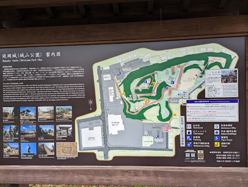 Only remain main gate and base of castle. But stone wall is a great built on Edo era, and very good place to watch cherry blossom in Spring. There is big bell on top, and bell keeper is striking it every day to inform time to citizon. you can see his task on 6:00, 8:00, 10:00, 12:00, 15:00 and 17:00. By local bus, only 7 min form Nobeoka station, operated every hour from 9:00 am to 16:00 pm. "Nobeoka Machinaka Bus", go with orange colored bus and back with green one. both in service...